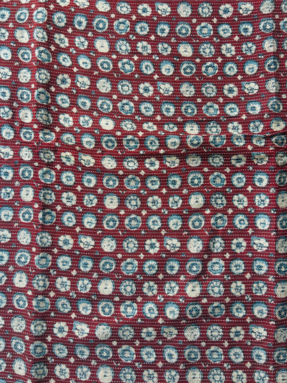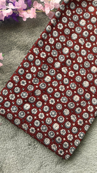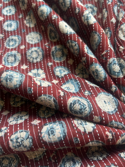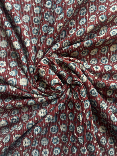 Maroon Ajrakh Print with kantha stitch on Cotton Fabric