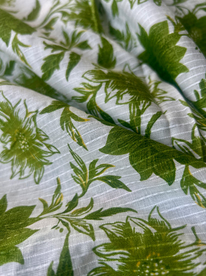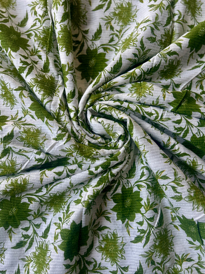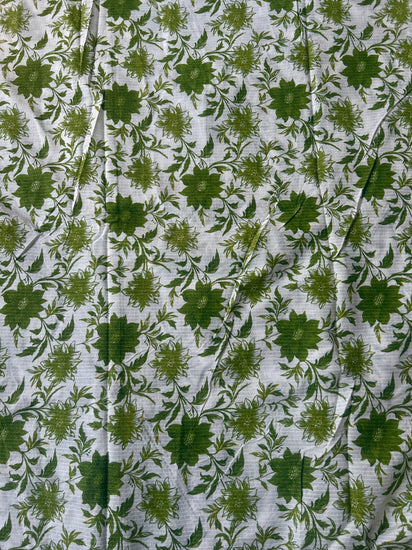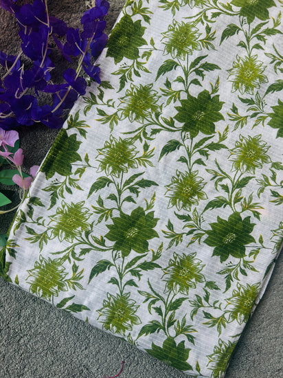 White Ajrakh Print with kantha stitch on Cotton Fabric