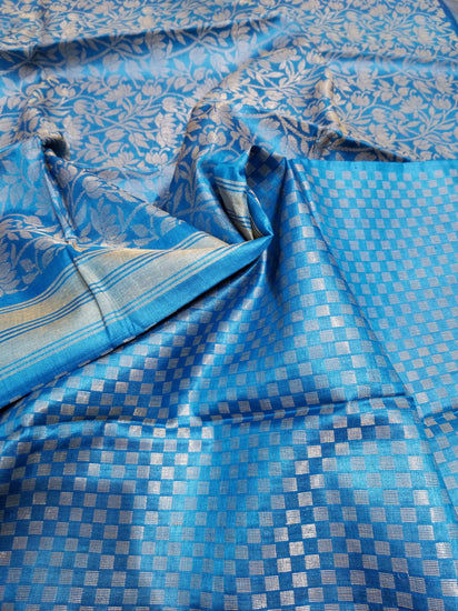 Azure Blue Handwoven Pure Tussar Silk with allover floral zari work