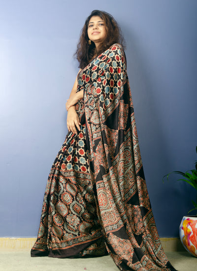BEAUTIFUL AJRAK HANDBLOCK PRINTED MODAL SILK SARI