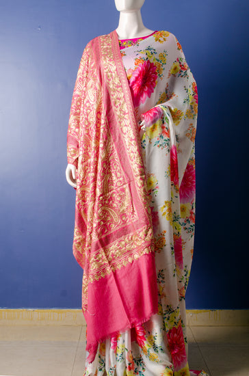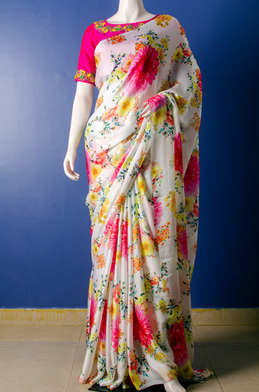 Beautiful Floral Digital Print Satin Georgette Sari.
