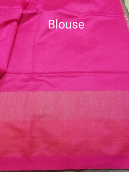 Beige Color Pure Dupion Silk Handwoven Sari with Pink and Red Pallu