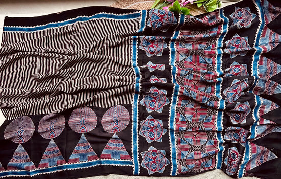 BLACK AJRAK BLOCK PRINTED MODAL SILK SARI