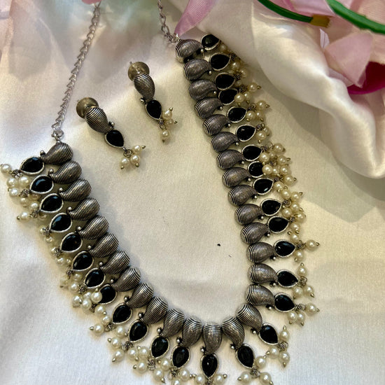 Black And White Perl Oxidised Necklace Set