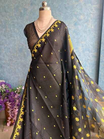 Black Yellow Soft Dhakai Jamdani