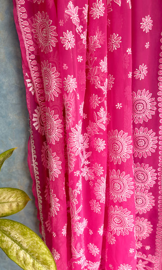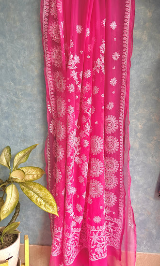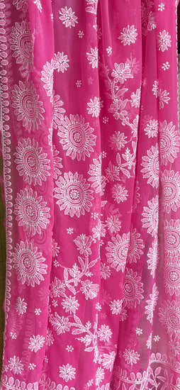 The alluring white Georgette saree weaved with white cotton thread. The fabric is lightweight and soft, best for any season use.