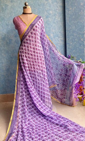 Handblock Printed Premium Chiffon Saree is crafted for effortless elegance and all-day comfort. So light weight and easy to drape.
