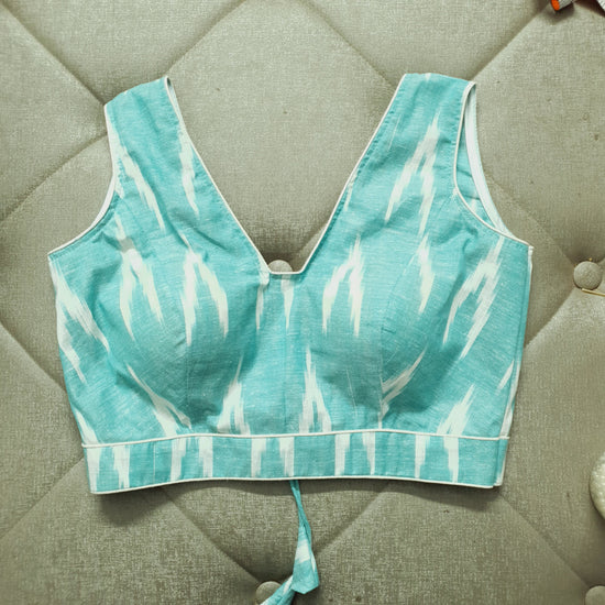 Sea Green Ikkat cotton designer blouse