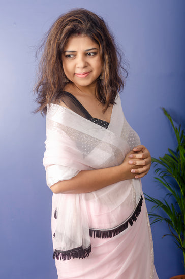Baby Pink Chiffon Sari with Black sequnce Blouse