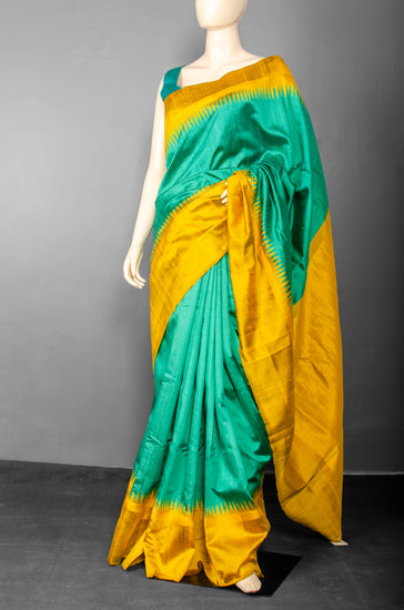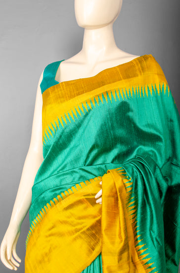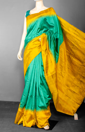 Handwoven Pure Raw Silk with Mustard Temple Border