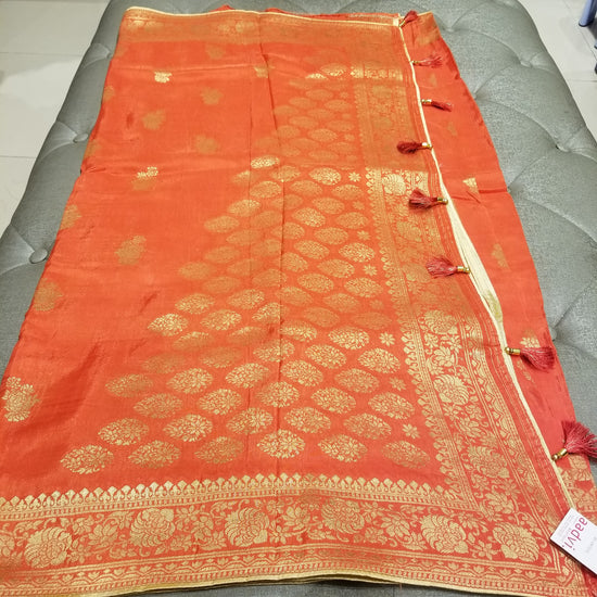 Blouse piece - included (Deep Pastel Orange with Golden floral motif border)