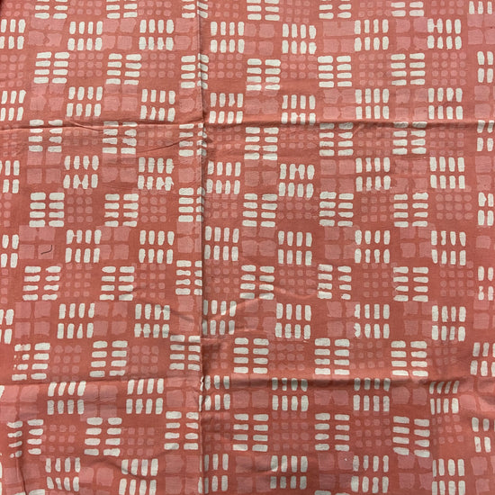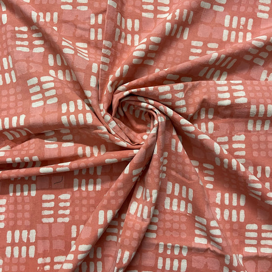 Coral Peach Geometric Pattern Hand Bock Print on Cotton Fabric