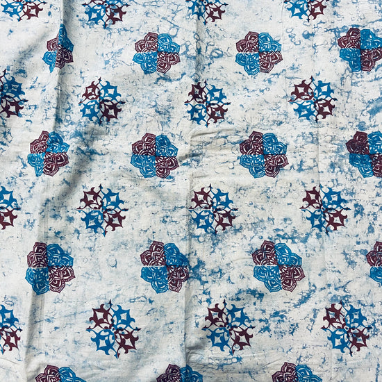 Bluish White Abstract Pattern Washed Indigo Digital Print Cotton Fabric