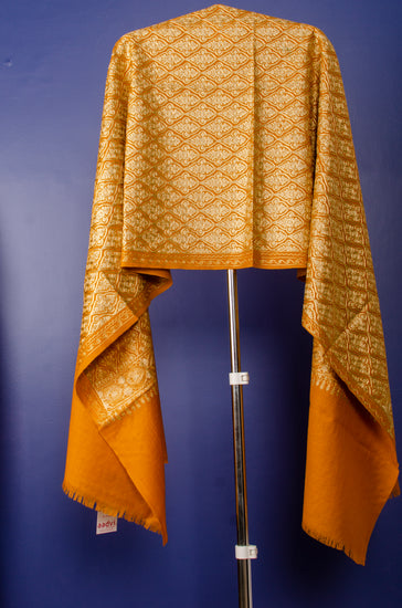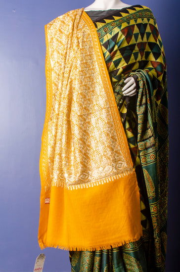 Golden Mustard Pure Pashmina stole with beautiful Resham embroidery on it.