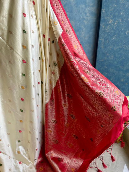 Elevate your traditional look with this exquisite Desirable Beige Masru Silk Saree. Crafted with intricate details and opulent embellishments, this saree exudes sheer elegance and sophistication. Perfect for any special occasion where you want to make a statement.