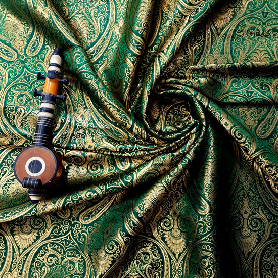 Green Brocade Fabric with Golden Zari for blouse piece.