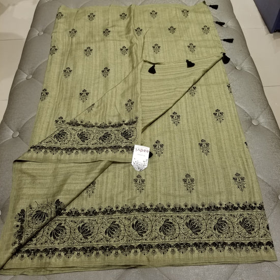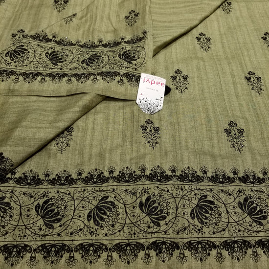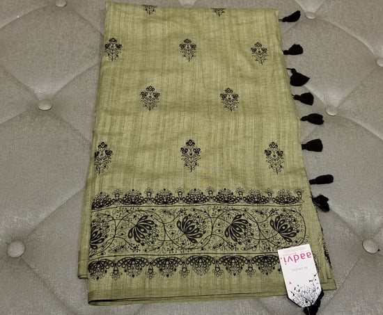 Pista Green Color Blended Silk Sari with Threadwork and black rhinestone