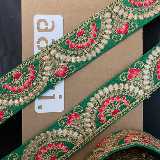 Green Embroidered Lace 9 Meters Roll
