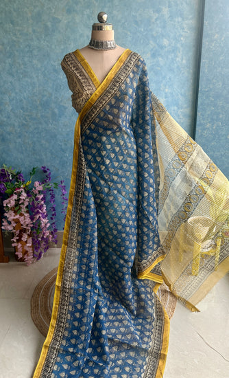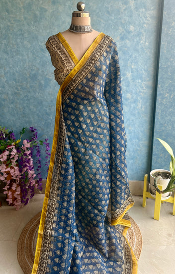 Beautiful Natural Dyed Hand block Printed Kota Doriya Sari with Blouse pc