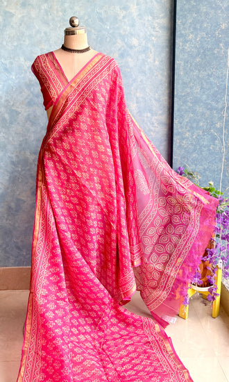 Pink HandBlock Printed Kota Sari