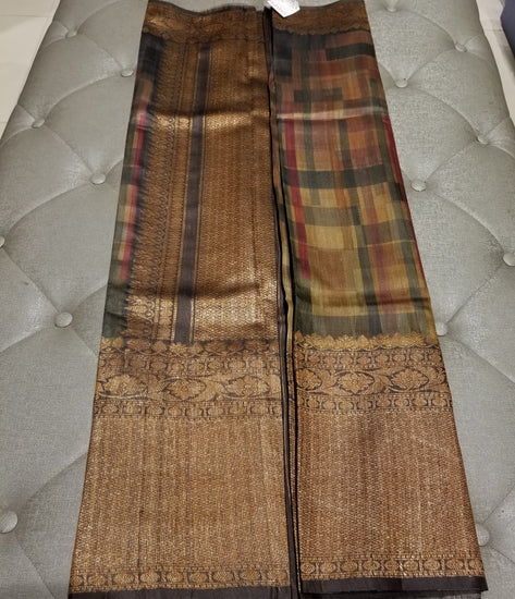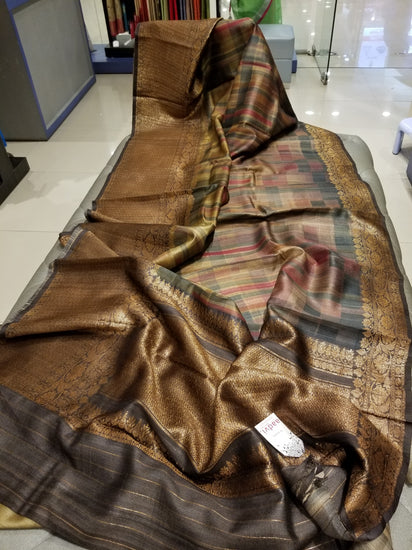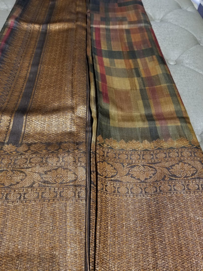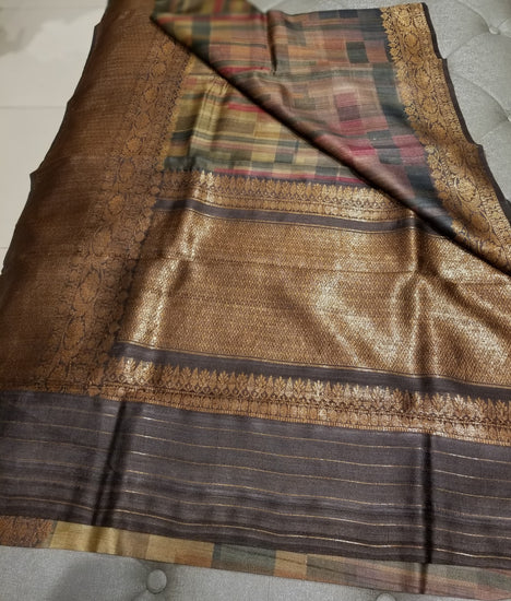 Digital and hand print on Pure Tussar Silk with Banarasi Border