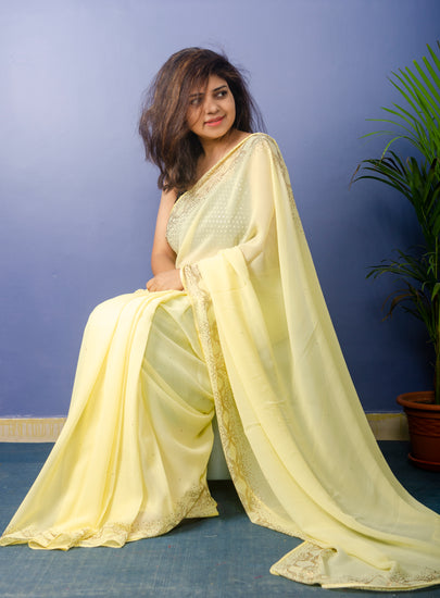 Lemon Yellow Viscose Sari with Swarovski Work.