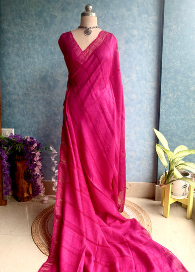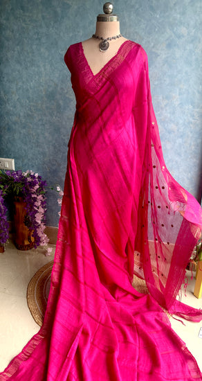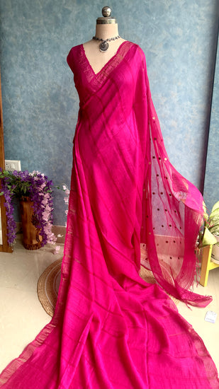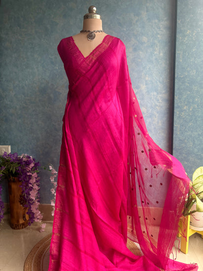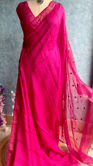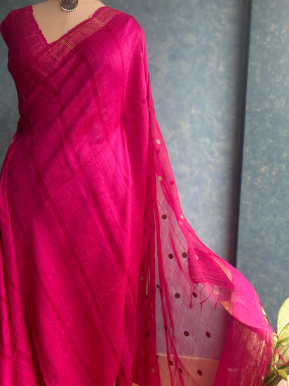Soft Handloom pure Matka Muslin silk saree with Coin Weaves on Muslin Anchal, with blouse