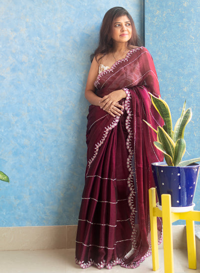Beautiful hand embroidery with cutdana and stone on Rosewood Jimmy choo organza Sari