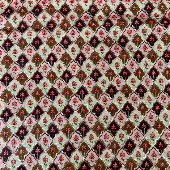 Multi Color Brown, peach, chocolate and pista green shades chinon fabric.