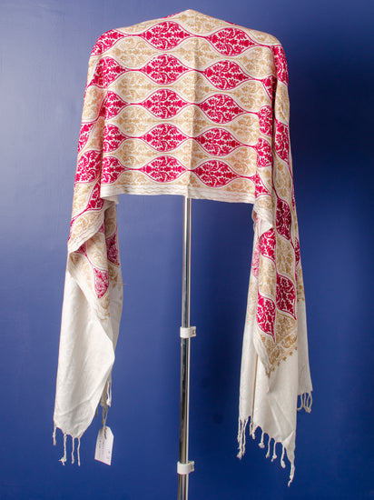 MULTI THREAD KASHMIRI EMBROIDERY ON WHITE STOLE