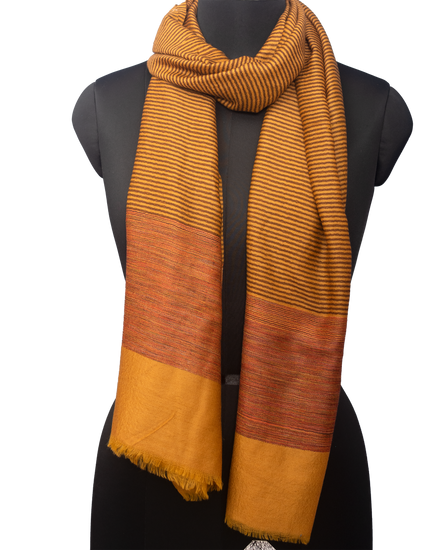 Mustard Color With Brown Stripe Woven Pashmina Stole