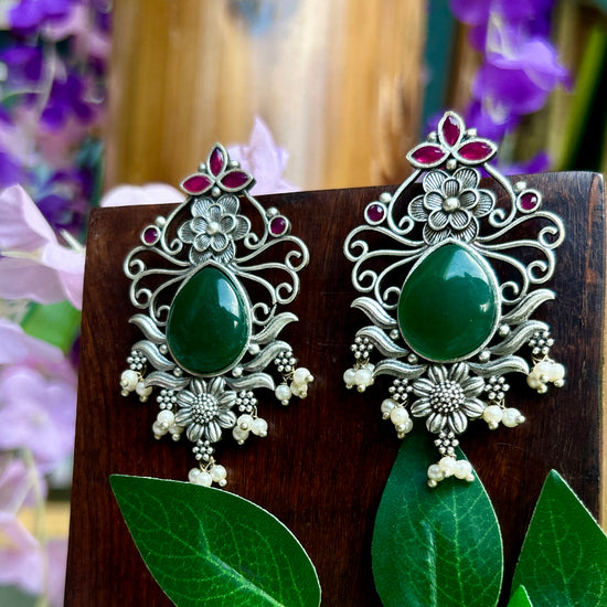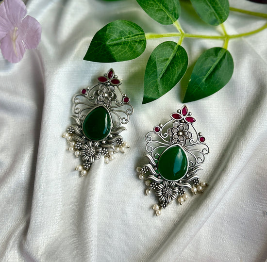 Opal Green Silver Oxidised Earrings