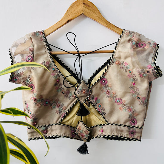 Accessories used in blouse like latkan, lace, thread etc may vary based on availability.