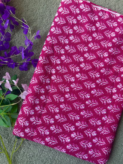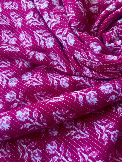 Pink Ajrakh Print with kantha on Cotton Fabric