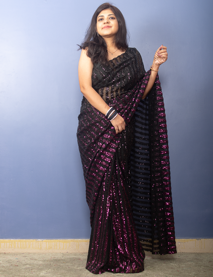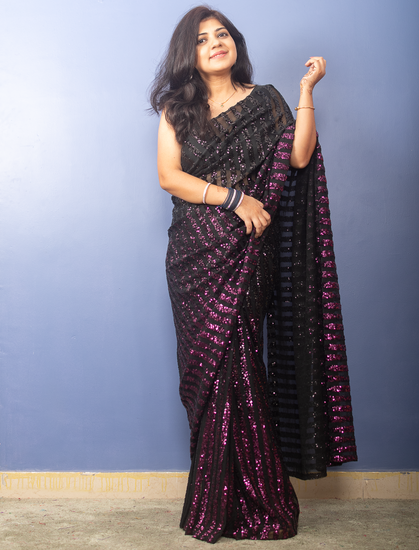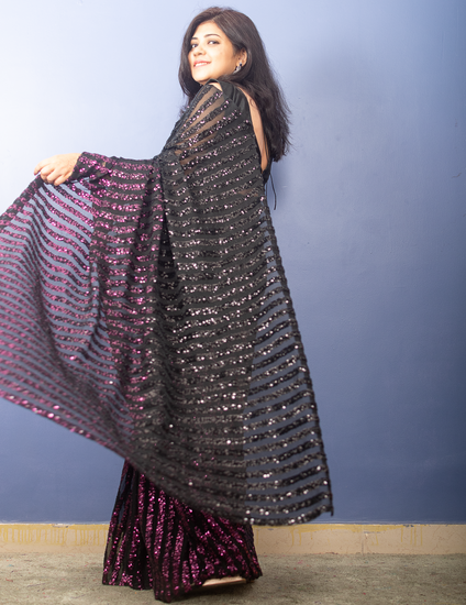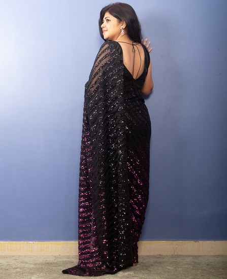 Pink to Black Shaded Sequin Sari