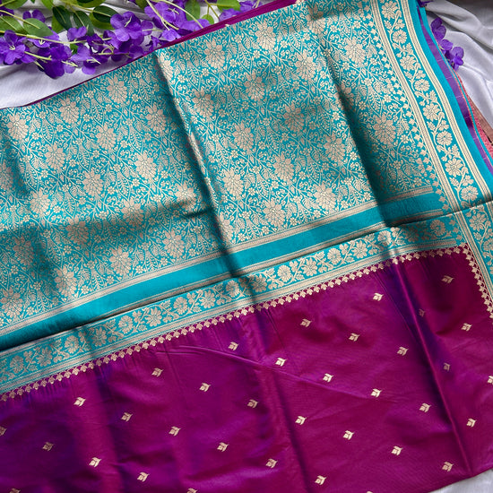 Embrace traditional Indian fashion with a modern twist in this stunning Lovely dual tone Purple Soft Silk Saree. The soft silk fabric is light and breathable, ensuring all-day comfort. The intricate design and delicate embellishments exude grace and finesse, making it a standout piece in your collection.