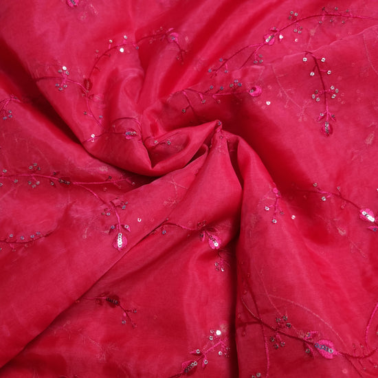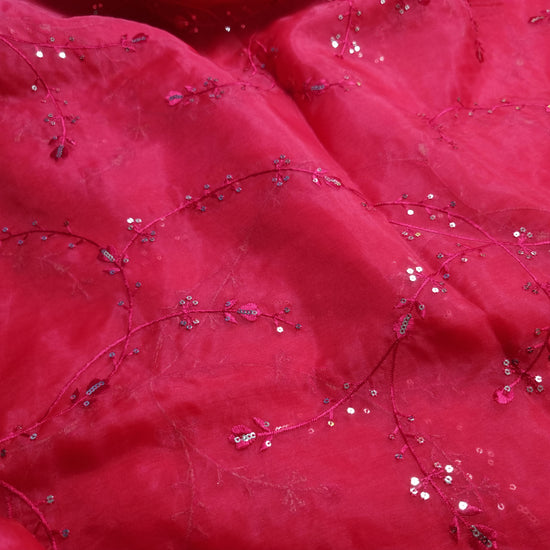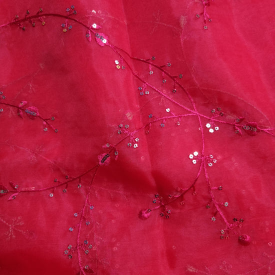 Raspberry Organza Fabrics with embroidery work