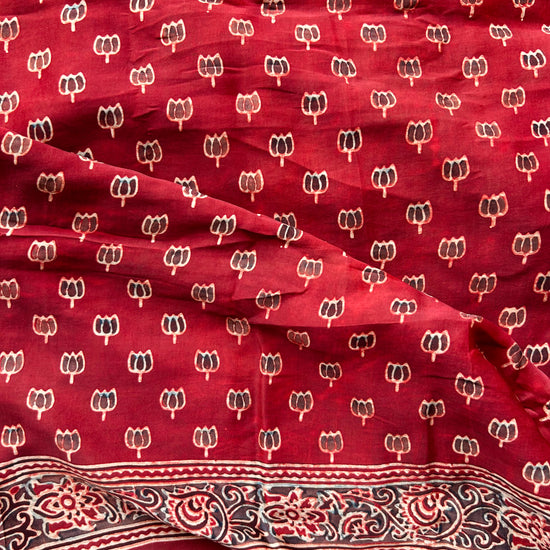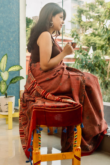 RUSTIC RED AJRAK BLOCK PRINTED MODAL SILK SARI