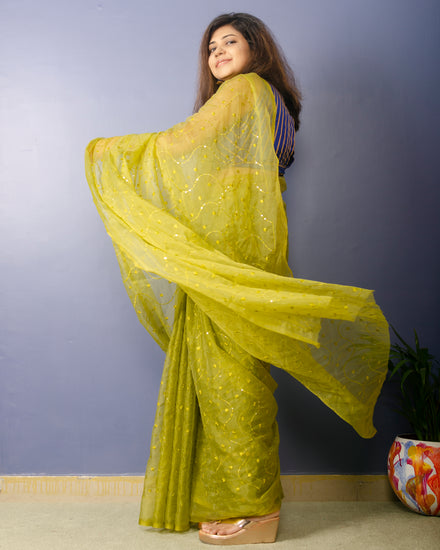 Sheen Green embroidred Organza Saree