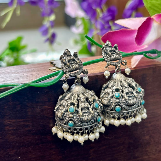 Sky Blue Stone Silver Oxidised Jhumka