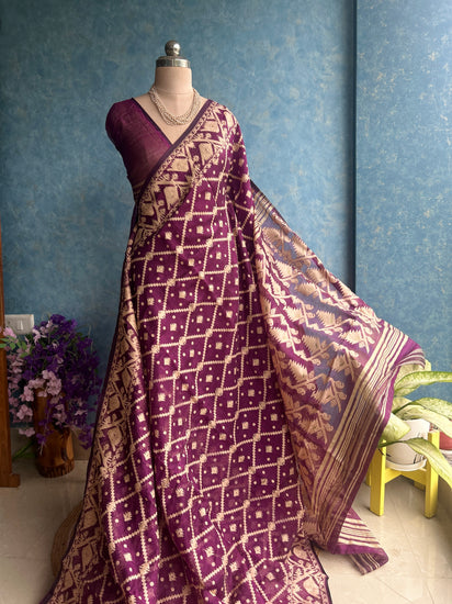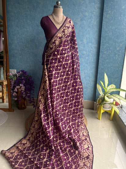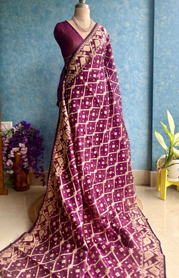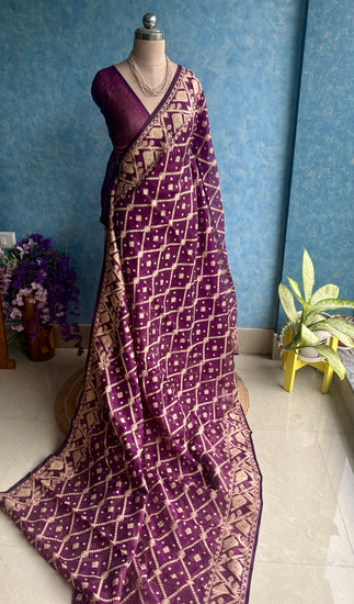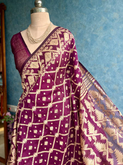 A very beautiful soft Jamdani Saree in raisin color with Resham work all over.