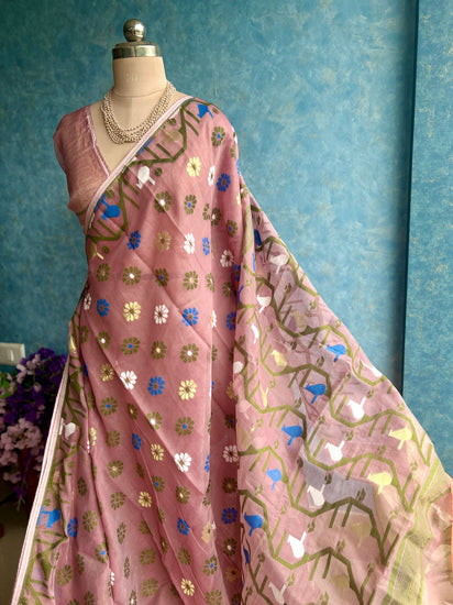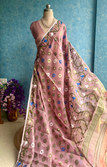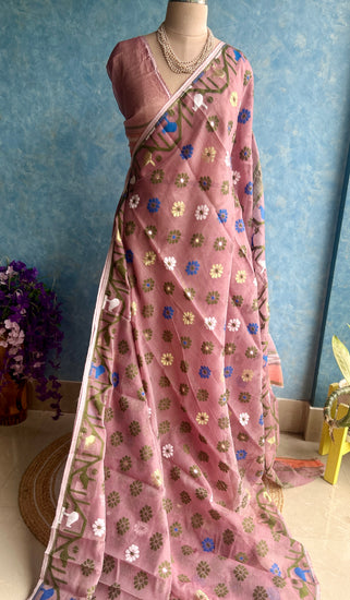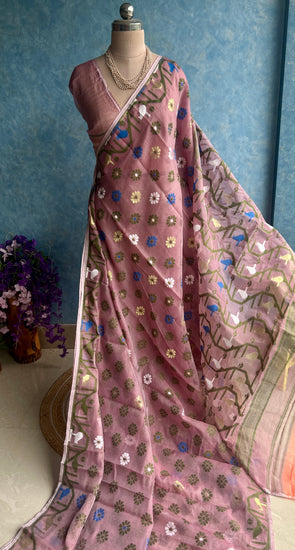 A very beautiful soft Jamdani Saree in light mauve color with Resham butas all over.