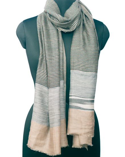 Natural Color With Black Stripe Woven Pashmina Stole