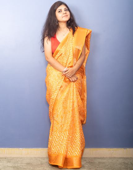 Tangerine Yellow Crepe Silk Saree with Bandhni Print