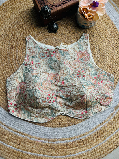 Accessories used in blouse like latkan, lace, thread etc may vary based on availability.