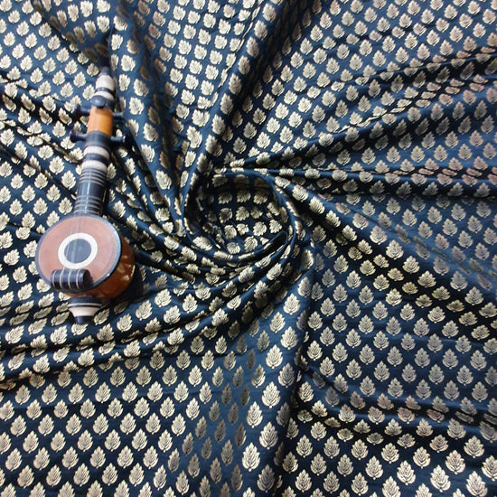 Black Brocade Fabric with Golden Buta for blouse piece.