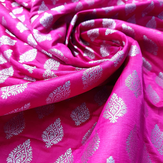 Woven Magenta Pink Brocade With Silver Buta Fabric