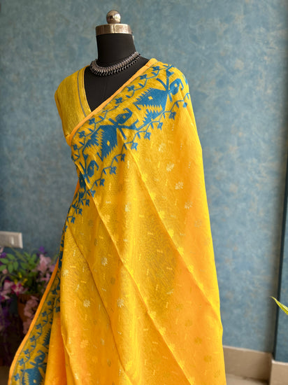 Yellow and Blue Soft Dhakai Jamdani