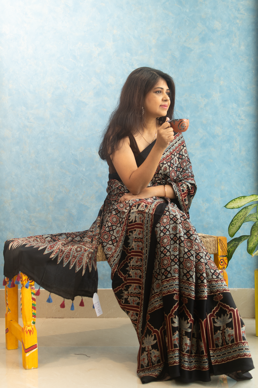 Beautiful hand picked collection of block printed saris and stoles sourced from Ajrakhpur, Gujrat. Light-weight and easy to wear, perfect for any ocassion.